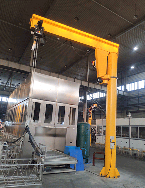 Fixed pillar jib crane adopts lightweight, modular and parametric design. The hoisting mechanism uses NR model low-headroom electric hoist, NL mode chain electric hoist or NS model servo electric hoist with superior performance and advanced technology. Slewing mechanism of the crane is drove by special slewing device for the jib crane or cycloid pin wheel three-in-one device and the control mechanism is equipped with the advanced variable frequency speed regulation control system.