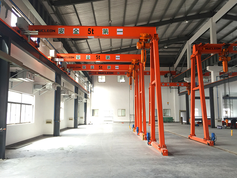 Hoisting mechanism of the universal hoist semi-gantry crane adopts modular and parametric design. The hoisting mechanism adopts a general rope electric hoist with stable performance, durability, safety and reliability. The traveling mechanism of the trolley is driven by vertical speed change or three-in-one drive device, and the common speed control system is used for control.