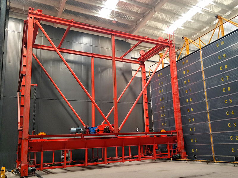 绿色建筑墙板养护窑主要用于辅助集成化预制板的生产工艺,可实现集成预制板的搬运、存储、堆垛、养护等功能。该设备由窑体、行走机构、升降机构、存取机构、液压系统、电气控制系统和加湿温控装置等七部份组成。该产品采用自动化控制系统,能够在生产线上自动识别、自动抓取、自动存取等作业,并通过窑体内保温、加湿设备对其进行养护。